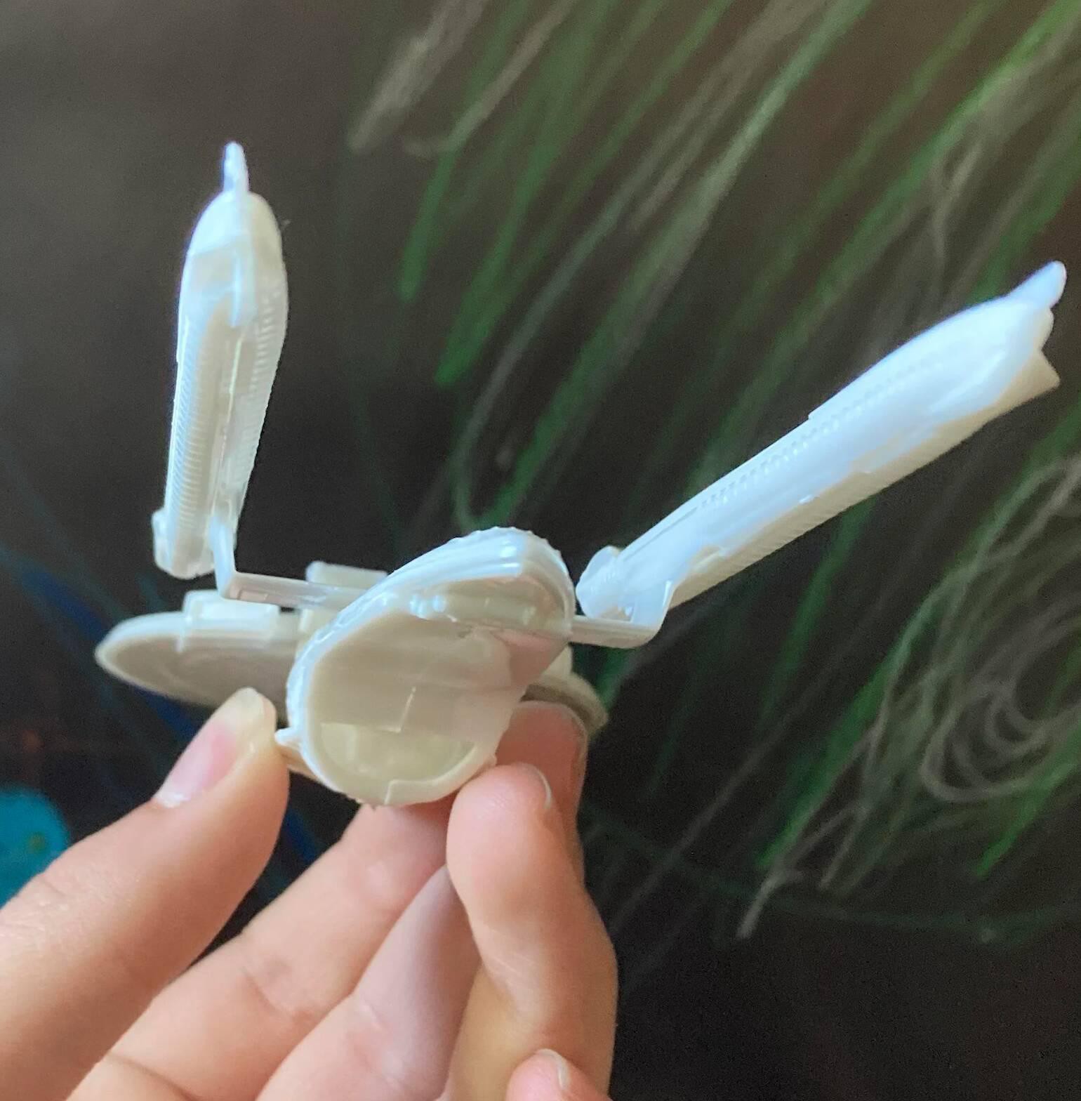 This was one of my most challenging builds for several reasons. Previous builds were pre-painted, but this time I had to paint the miniature model myself, which required learning new techniques and delicate decals. Being a miniature, I had to carefully design the space and determine the number of fibers to insert. Meticulously planning the order of tasks was crucial, as I had to drill, sand, insert fibers, paint, varnish, apply decals, and add more varnish without the ability to fix mistakes from prior stages. Below, you'll see the original model unpainted, which was part of a set of three ships at a 1/2500 scale: