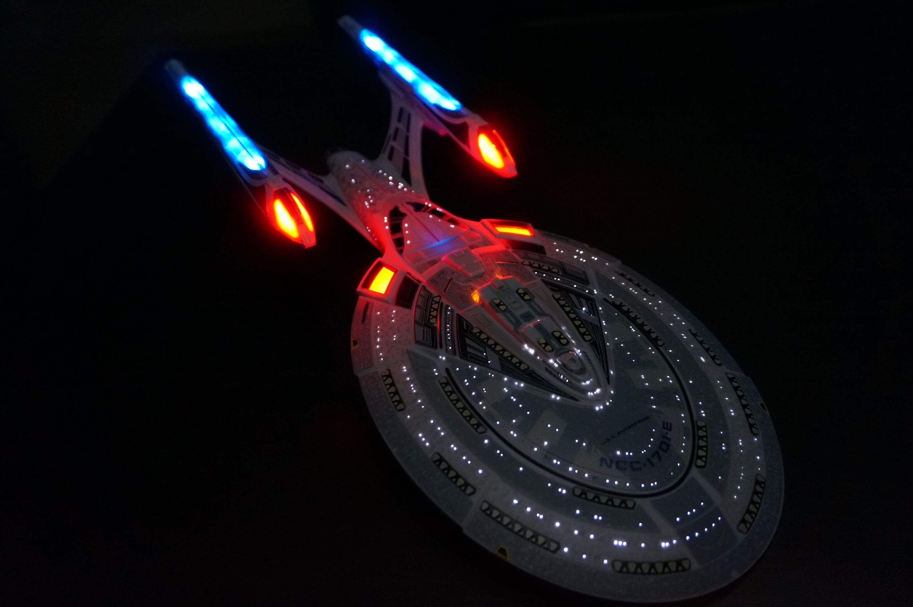 My first build (Enterprise E) was a bit rough around the edges, as I was diving into uncharted territory and learning a lot on the fly. The second project (Enterprise D) was not only bigger but also better, with 3x ligths.